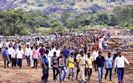 Marching together: Villagers from Kombadbhuje, Ulwe, Ganeshpuri, Varchevada, Vaglevada and Targhar protest against the Navi Mumbai Airport in Ulwe (Yogesh Mhatre)